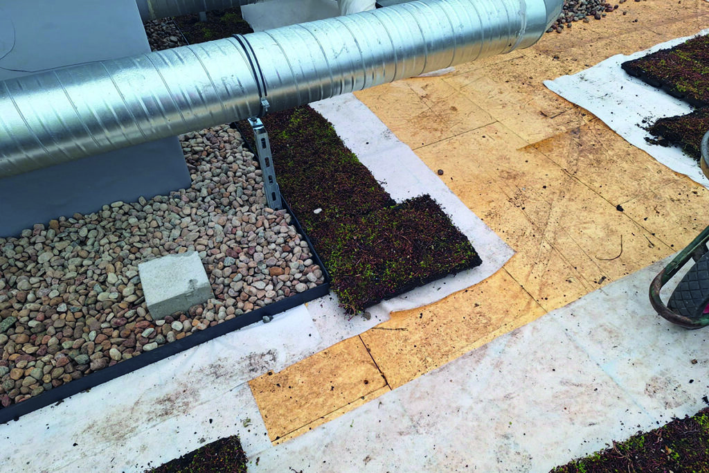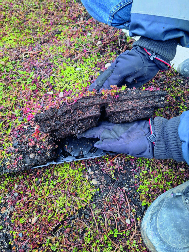 • Stosowanie niewłaściwego substratu. Zastosowanie ziemi ogrodowej (humusu) zamiast odpowiednio dobranego substratu dachowego blokuje retencję wody i prawidłowy jej przepływ. Nie spełnia ona również wymagań przeciwpożarowych budynku. Obecnie dopuszczalna zawartość frakcji organicznej wynosi max. 50% – Broof (t1). Zatem zastosowanie specjalistycznych substratów gwarantuje prawidłowe funkcjonowanie dachu oraz ma decydujący wpływ na kondycję roślinności.